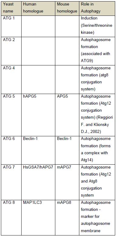 عمليات هضم للمواد الخلوية من داخل الخلية وتختلف عن الابتلاع التي تكون للمواد من خارج الخلية ، والعمليتان من عمليات الايض الخلوية والتغذية التي تتشابه في بعض الوجوه ، والالتهام الذاتي يحدث في حالة المخمصة اونقصان الاغذية للحصول على الطاقة والمواد الغذائية ، وهناك قاعدة بيانات Autophagy Database تضم البروتينات المشمولة بعملية الالتهام الذاتي والجينات العاملة فيها . وتوجد قاعدة بيانات خاصة بالانسان HADb