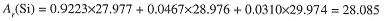 Naturally occurring silicon is 92.23% 28Si, 4.67% 29Si, and 3.10% 30Si. For chemical purposes, it is sufficient to know the average mass of a silicon atom in this isotopic mixture. These average masses are designated by Ar (E), where E is the symbol for the particular element. For example, the average mass of silicon atoms is