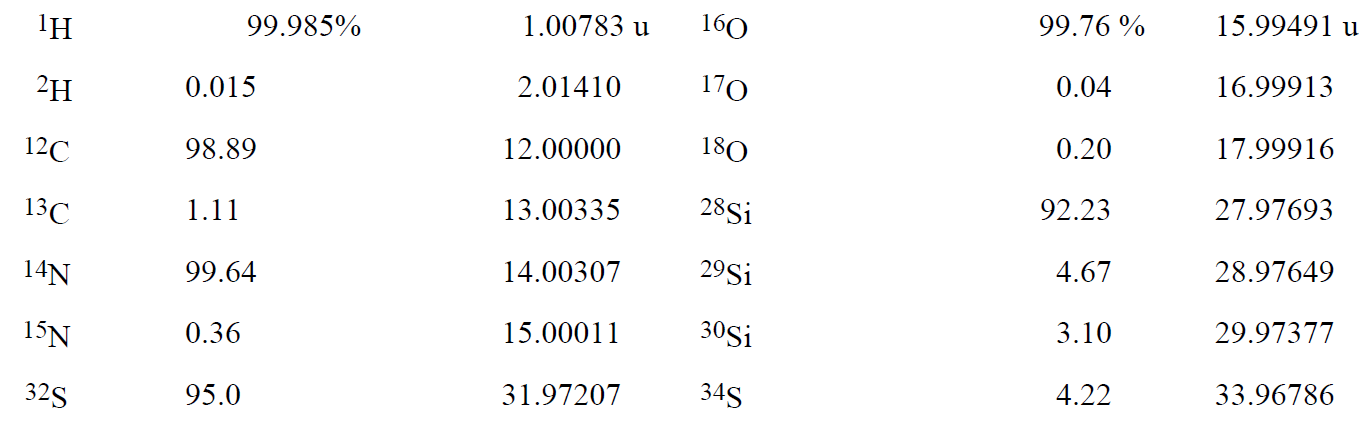 Because the mass of an atom is very small, it is convenient to define a special unit that avoids large negative exponents. This unit, called the atomic mass unit and designated by the symbol u (some authors use the abbreviation amu), is defined as exactly 1/12 the mass of a 12C atom. Thus the mass of a 12C atom is exactly 12 u. The masses and abundances of some other nuclides are listed in Table 1-1.