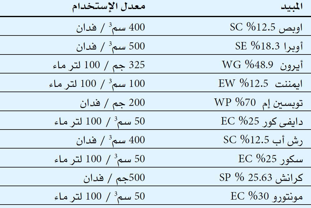 معالجة البؤر المصابة فقط. مع مراعاة الرش على الفقس الحديث.