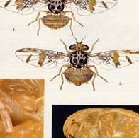 ظهور وخزات على جسم الثمرة مع تغير في لون المنطقة المحيطة بالوخزات ولين داخل الثمرة نتيجة لتجول اليرقات وبالضغط عليها يخرج السائل منها ويشاهد تساقط للثمار حول الشجرة.