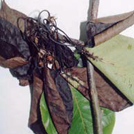 تحدث الإصابة عن طريق مياسم الأزهار حيث يتحول لون الأزهار والأوراق بالدابرة إلى اللون الأسود مع وجود الإفرازات البكتيرية على أعناق الأزهار والأوراق وذلك في حالة توفر رطوبة جوية مرتفعة بنسبة %80 فأكثر مع سقوط الأمطار. وتمتد الإصابة إلى قاعدة الدابرة ثم إلى الأفرع الحاملة للدوابر في صورة تقرحات والتي تمتد حتى الأفرع وجذوع الأشجار في الإصابات الشديدة.