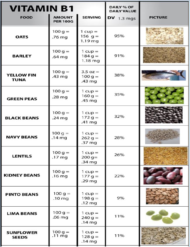 ومن الامراض العصبية التي يساهم فيها Wernicke’s Encephalopathy اي اصابة الجهز العصبي المركزي ويمكن ان ترتبط مع الامراض التنفسية كما في Wernicke-Korsakoff Syndrome ، وكذلك الاضطرابات العاطفية ونقص الوزن وفقدان الاحساس والألم في الاطراف وورم يكون شائعا ، ويؤدي الى زيادة حامض اللاكتيك والبايروفيك في الدم ، وفي الحالات المتطورة يؤدي الى فشل القلب والموت . يشخص بقياس الفيتامين في الدم والبول ، يعالج بأخذ الفيتامين الذي يكثر في العديد من الاغذية كما موضح في الاتي: