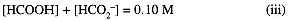 We expect the solution to be at least weakly acidic, which suggests that [OH-] << [H3O+] so that we can ignore [OH-] in Eq. (iv). Equations (iv) and (iii) give [H3O+] = [HCO2-] = x and [HCOOH] = 0.10 - x. We can