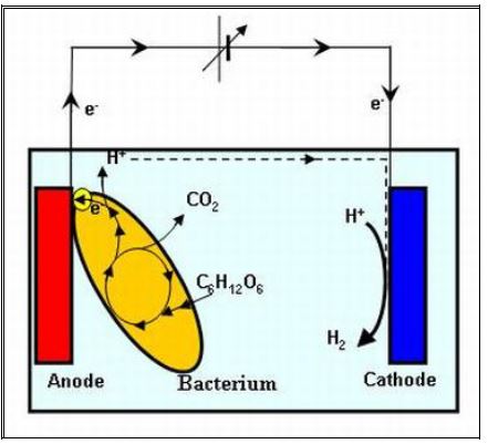 الكهربائية المتولدة من التفاعلات الحيوية عبر أغشية حيوية عازلة وتعتمد أساساً على تحويل الطاقة الكيماوية إلى طاقة كهربائية، فقد وجد أنه تحت الظروف الهوائية وبوجود الكلوكوز فيمكن لبكتريا Escherichia coli أو الخمائر أن تسجل فولتية تصل إلى 0.3–0.5 فولت وتيار 0.2 ملي أمبير باستعمال قطب بلاتيني وفق التفاعلات التي يمكن أن تشارك فيها الأنزيمات المعنية .