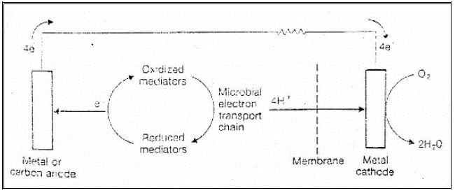 أما النوع الآخر من التفاعلات التي تستعمل في توليد مواد كيماوية إلكترونية من مواد متعادلة مثل الكحول الاثيلي كمصدر أساسي فتعتمد على مكونات السلاسل التنفسية للأحياء المجهرية التي تنمو على مواد أساس تلاؤم نموها كما موضح في الشكل الآتي :