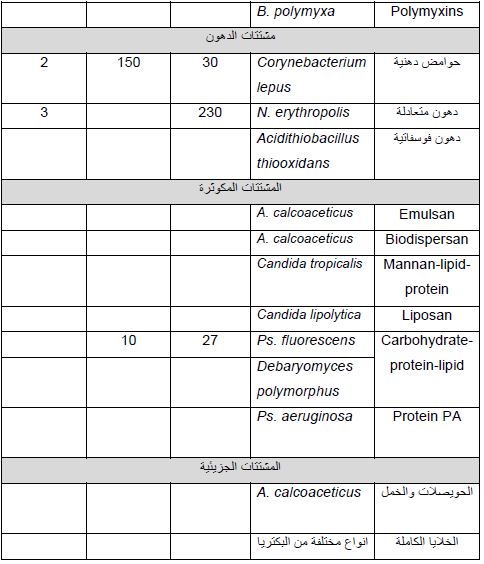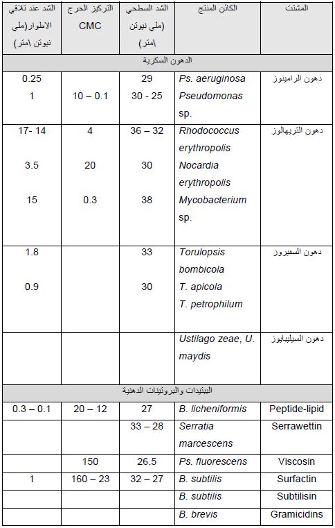 مكوثرات ذات طبيعة كاربوهيدراتية عادة تفرزها الأحياء لغرض تقليل الشد السطحي للمواد المحيطة بها وتحويلها إلى قطرات صغيرة لغرض استهلاكها وتستعمل مثل هذه المواد في استخلاص البترول أو غيره من المواد. وتنتج من احياء مختلفة ومنها المذكورة في الجدول التالي مع بعض مواصفاتها :