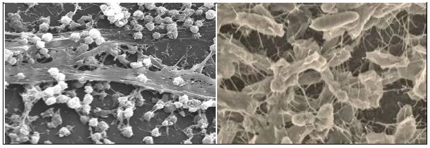 مواد جلاتينية تتكون من الأحياء وإفرازاتها من المكوثرات خارج الخلايا، وقد تكون هذه مواد العلب Capsules التي تحيط بالخلايا أو الطبقات المخاطية Slime Layers التي تفرزها الأحياء المجهرية.