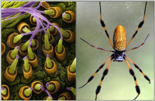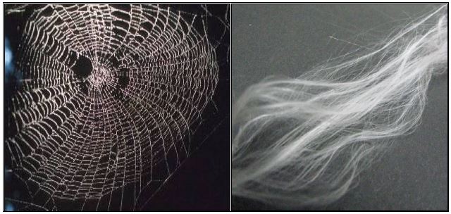 خيوط العنكبوت المنتجة من الغزالة الذهبية Nephila clavipes ولكن انتجت بطرق الهدنسة الوراثية وامكن انتاجها في احياء غير العنكبوتيات كما في حليب الماعز ، وخيوط العنكبوت تكون قوية وتضاهي خيوط او اسلاك الفولاذ المشابهة لها في القطر .