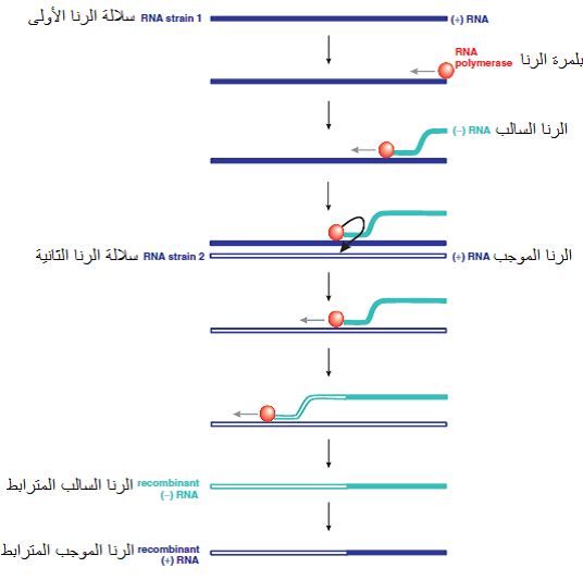 2) إعادة الارتباط في الفايروسات ذات جينوم الرنا
