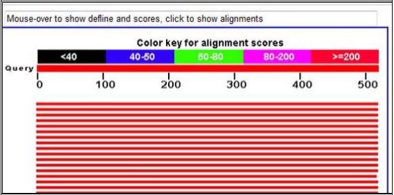 وتظهر نتائج الاصطفاف للحوامض النووية بالشكل التالي الذي يظهر حالة التماثل فقط ويكون التقرير كالاتي :