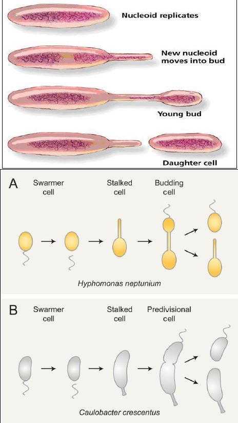 أمـــــــــــــــا فـــــــــــي البكتريا فالتبرعم يوجد بنــــــــــدرة مثل بكتريا Nitrobacter winogradskyi وجنس Blastobacter ،Hyphomicrobium .