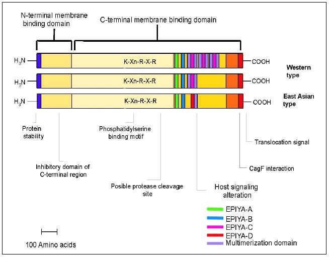 يشارك مع عوامل اخرى في حث سرطانات المعدة . يحوي السم على قطيفات Motifs خاصة من الحوامض الامينية هي EPIYA التي تتكرر وتكون مسئولة عن ضراوة السم . وتختلف الدول الغربية عنها في دول الشرق الاقصى بصورة خاصة في نوعية القطيفات وعددها .
