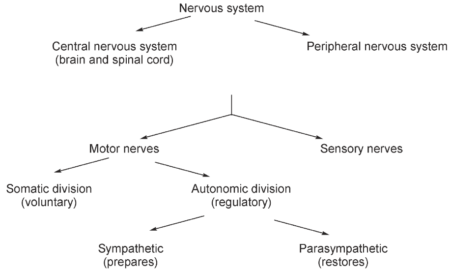 The nervous system has two major divisions: the central nervous system (CNS) comprising the brain and spinal cord, and the peripheral nervous system that lies outside this (see Scheme 2).