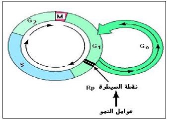 الخلايا في حالة عدم الانقسام تكون في المرحلة G 0 ولكن عند استلامها للإشارات Signals الخارجية تدخل مرحلة G1 .
