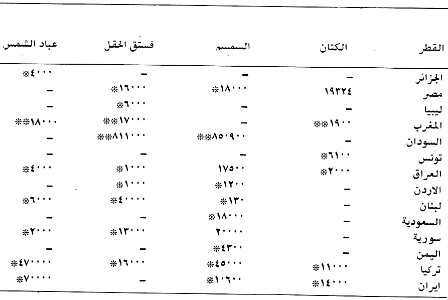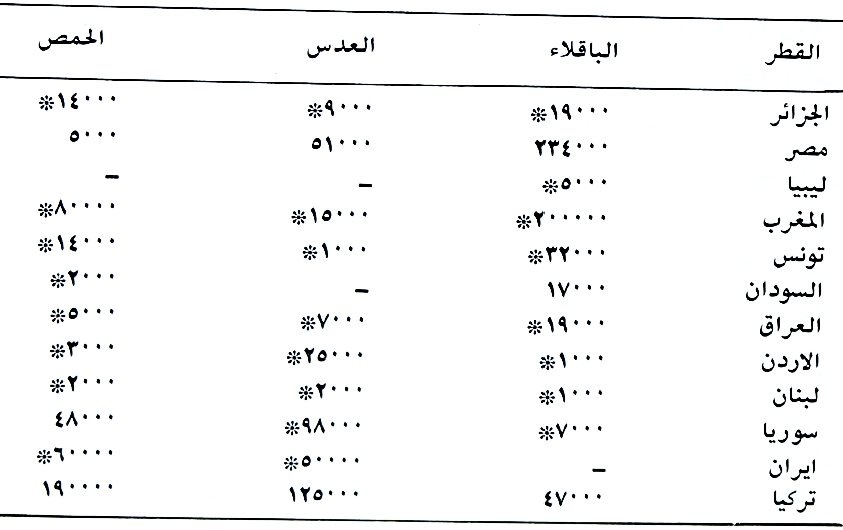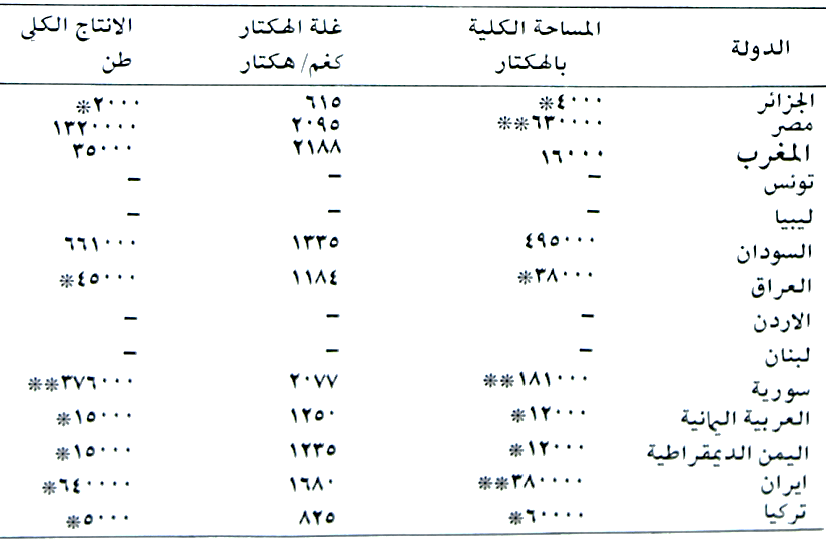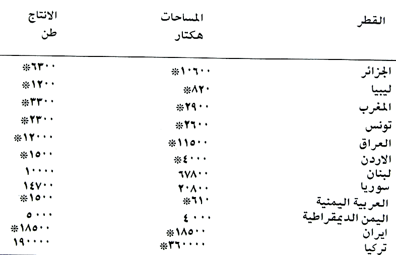 معظم الاقطار العربية تنتجه ولكن اهمها سوريا والعراق ولبنان حسب الجدول (22).