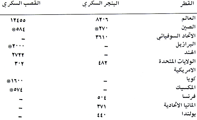 بلغت المساحات العالمية الكلية المزروعة به اكثر من ثمانية ملايين هكتار والانتاج بأكثر من ۲۳۷ مليون طن من رؤوس البنجر (الجذور) واهم الدول المشهورة بإنتاجه هي : الاتحاد السوفياتي وفرنسا والولايات المتحدة الامريكية وبولندا والمانيا الاتحادية حسب الجدولين (۱۷ و ۱۸) اما الاقطار العربية المنتجة له فهي المغرب وسوريا والجزائر حسب الجدولين (۱۹ و ۲۰).