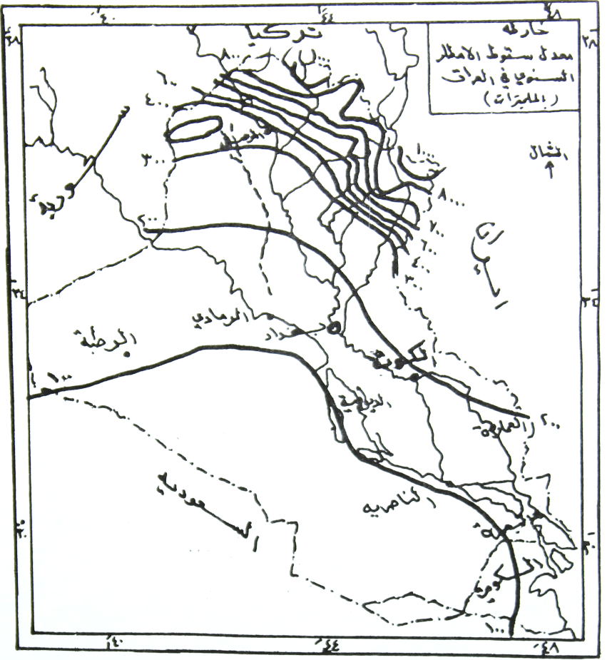 شكل يبين معدل سقوط الامطار السنوي في العراق