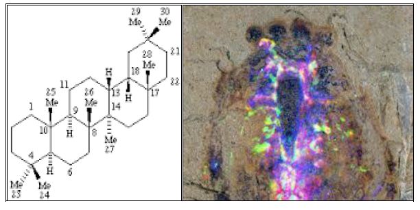 المواد الكيماوية الموجودة في الصخور التي يمكن ان تعطي فكرة عن الحياة القديمة في المنطقة التي تستخلص منها ، واكثرها اهمية الهيدروكاربونات وكذلك المركبات المشتقة من الصبغات ، ومنها النفط والفحم أي الوقود الحفري .
