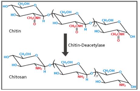 مكوثرات β - (1 →4) – linked D – glucosamine أي أنها كايتن لا يحوي على مجاميع الاستيل .