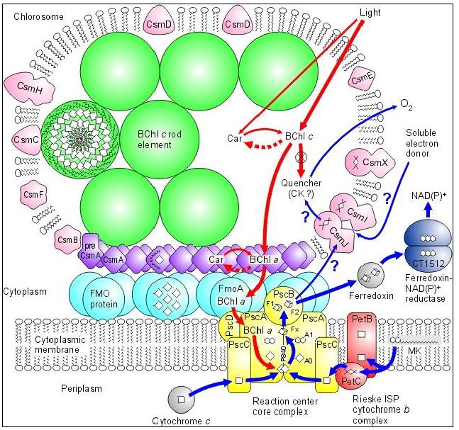 المصطلح المرادف للحويصلات الخضر Chlorobium Vesicles والأجسام الخضر تحوي على الصبغات التي تقتنص الضوء ولكن يكون مركز التفاعلات الضوئية هو الغشاء الخلوي الذي ترتبط به.