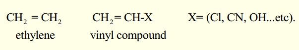 وهي مركبات الأوليفينات (الايثيلين ومشتقات الإيثيلين المعروفة باسم مركبات الفينيل (vinyl compounds.