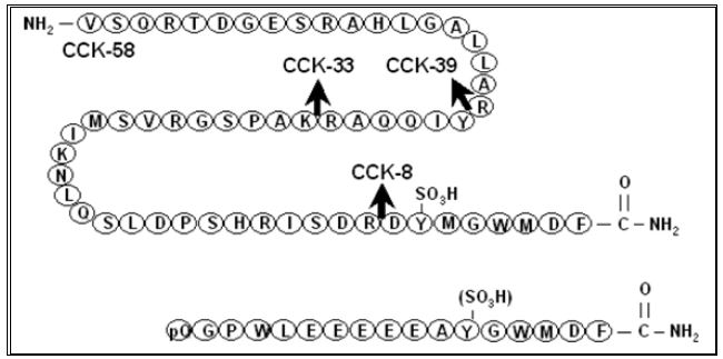 هرمون ببتيدي في الجهاز الهضمي يشبه Gastrin ، مكون من ببتيد مفتوح ، يخلق بداية على شكل Preprohormone ثم يفلق ليعطي ببيتدات لها النهاية الكربوكسيلية نفسها ، ويرتبط كل ببتيد الى مستلم خاص به وفق عدد الحوامض الامينية فيها كما موضح في الاتي :
