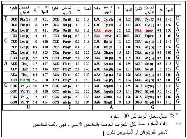 اما تفضيل استعمال شفرات معينة للحوامض الامينية فله عدة أسباب منها إتباع محتوى الجينوم العام، فمثلا Escherichia coli محتوى جينومها من GC يصل الى 50 % التي تعد النموذج الدراسي والموضحة بعض الحقائق عن استعمالها للشفرات في الجدول الاتي :