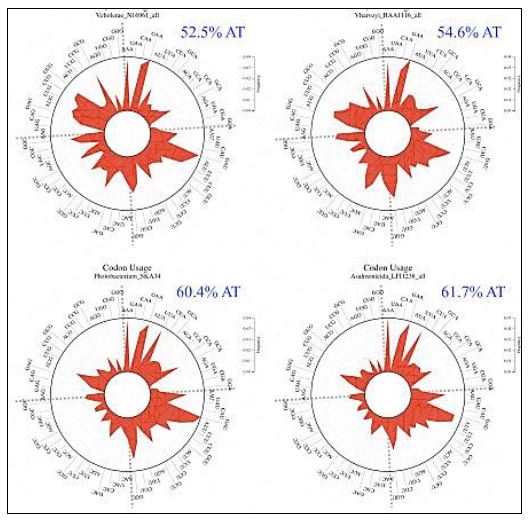 وقد تكون عملية كفاءة الترجمة هي المؤثر الأكبر اذ ان الكفاءة العالية تعني المعدل العالي من تخليق البروتينات والمعدل الواطئ من الأخطاء في الوقت نفسه ، والكفاءة هذه تتأثر بشكل كبير بوجود جزيئات tRNA الملائمة والجزيئات المناظرة ، فبعض الأحياء تحوي على كميات كبيرة من جزيئات tRNA المناسبة الخاصة بحامض اميني محدد وهذا يعني وجود الشفرات الملائمة لها ويؤدي الى تخلي الخلايا عن القوة الدافعة للطفرات المؤدية الى التغيير، وهذا ما يحصل في الفقريات الراقية او البكتريا التي تعيش بطريقة متطفلة داخل خلايا المضيف وكذلك بالنسبة للعضيات الخلوية مثل المايتوكوندريا والبلاستيدات الخضر وغيرها .وقد وضعت برامج خاصة لتحديد استعمال الشفرات والقيم الاحصائية لها مثل Rose Plot المعتمد على توفر القواعد النتروجينية مثل AT الموضح في الاتي :