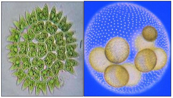 تجمعات الطحالب الصغيرة وتكون التجمعات مكونة من 4 ، 2 ، 8 أو 16 خلية بشكل مرتب وتوجد في رتبة Chloroccocales التي تضم الطحلب Scenedesmus المهم في إنتاج العديد من المواد، وتميل للتفكك إلى خلايا مفردة باختلاف الظروف البيئية.