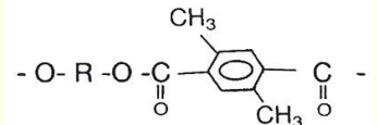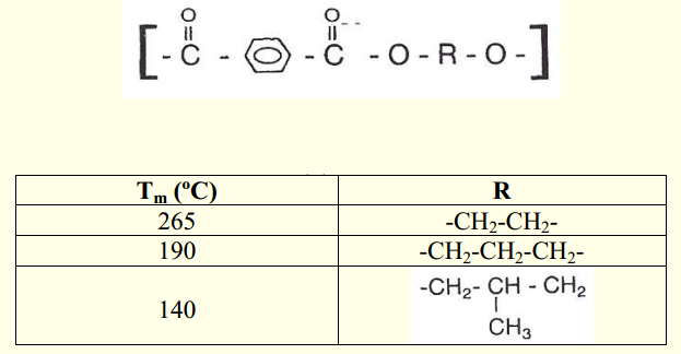 في بوليمر البولي استر الذي يحمل على حلقة البنزين مجموعتي ميثيل متماثلتين فإن درجة الانصهار = 130 C.