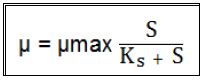 Ks تركيز المواد المحددة للنمو عندما يكون μ max 0.5 = μ