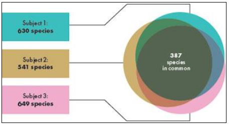 محتوى الميكروبات التي يشترك فيها معظم افراد المجتمع او الجميع ولكن الاختلافات الكبيرة لم تسمح بمثل هذا الاستنتاج مما أدى الى استعمال وحدات تصنيفية عالية أو الاعتماد على الجينات الفعالة بدلا من البحث عن الأحياء على مستوى النوع من التصنيف.