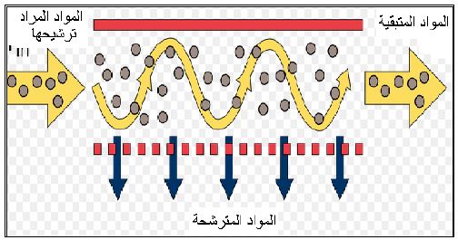 ترشيح يتم باستعمال مرشحات خاصة يكون مرور المواد المراد ترشيحها ليس بشكل عمودي وإنما بشكل مماس كما موضح في الشكل الآتي :