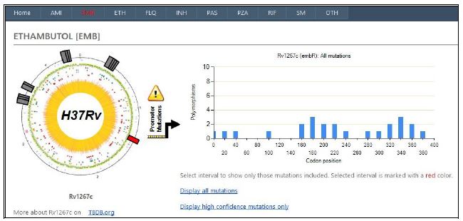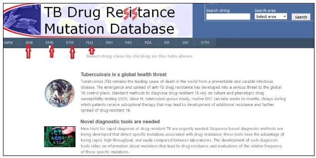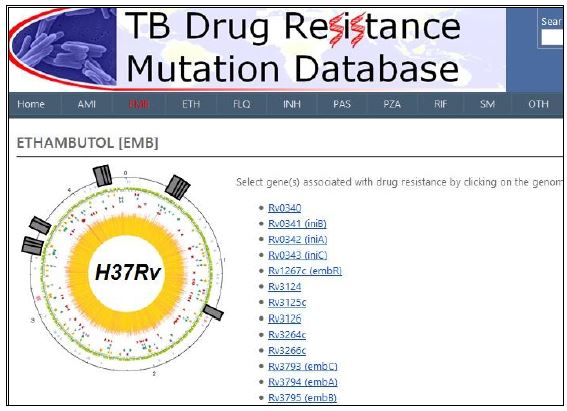 والقاعدة مخصصة لدراسة الطفرات الخاصة بالادوية المستعملة للسل TB، التي يمكن البحث فيها عن الطفرات التي ادت الى جعل البكتريا مقاومة للادوية فمثلا الدواء Ethambutol هناك عددا من الجينات التي يمكن ان تتغير كما موضح في الاتي :
