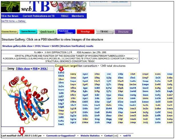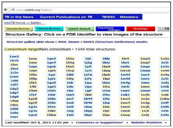 كما يمكن اظهار جميع الجينات التي تم تحديد التركيب البلوري لمنتجاتها