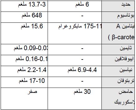 اما دهونها فتحوي على الحوامض الدهنية الآتية