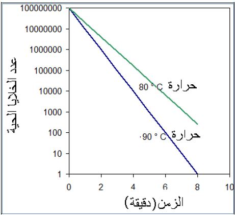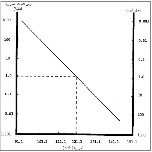 المنحنى الذي بواسطته يمكن تحديد الوقت اللازم للقضاء على الأحياء المجهرية فنظرياً يمكن تمثيله بالشكل الآتي :