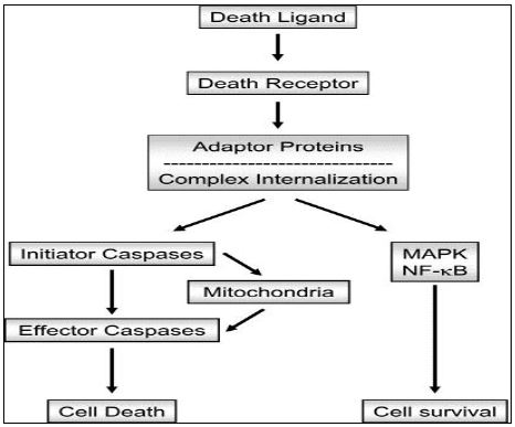 مجموعة من مستلمات او عائلة Tumor Necrosis Receptors ،فيها جزء سايتوبلازمي يدعى دومين الموت Death Domain الذي يساعد عند استلام المستلم الاشارة او الربيطة الملائمة الى تجمع عدد من البروتينات التي تبدأ سلسلة من الفعاليات المحللة للبروتينات مثل Caspases 8 , 10 تؤدي الى تحلل الخلايا .