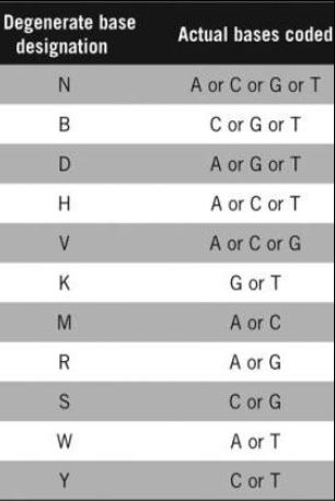خليط من تواليات DNA التي فيها بعض المواقع يمكن ان تحوي على اكثر من نوع من القواعد ، وهذه تبنى او تصمم عند معرفة تواليات البروتين فقط ، ولها برامج خاصة لتصميمها ، يمكن ان تستعمل معها حروف غير تلك الخاصة بالقواعد النتروجينية .