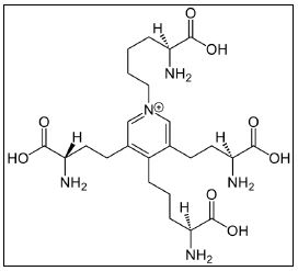 مركب يوجد في بروتين المطاطين Elastin وهو المسئول عن مطاطية البروتين ، وجوده في البول او البلازما او القشع دليل على تكسر المطاطين نتيجة لفعالية الانزيم Elastase التي تكون مرافقة لبعض الامراض .