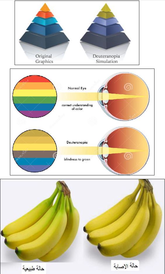 احد انواع عمى الالوان خاصة اللون الاخضر منها حالات خفيفة وتظهر الالوان كما في الشكل الاتي :