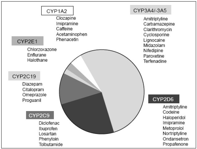 والإنزيمات التي تقوم بهذه الفعاليات هي Cytochrome P450 Monooxygenase System وكذلك الإنزيمات المؤكسدة للأمينات Mixed-Function Amine Oxidase System . والشكل التالي يوضح بعض الإنزيمات العاملة في الطور الأول والمواد التي تعمل عليها .