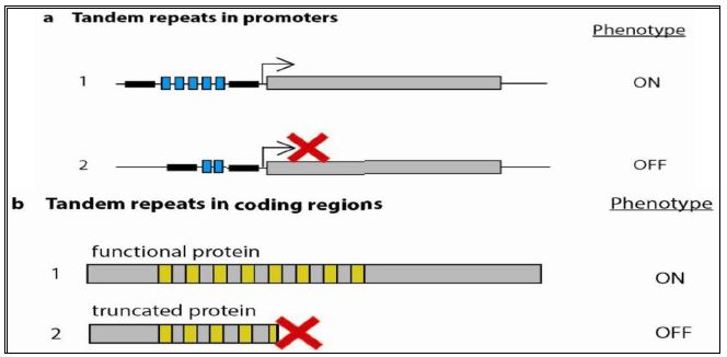 ولهذه التواليات تاثيرات كبيرة في وظائف الخلية ، مثلا n≥12) (TG/CA(n) تقلل من عمليات الانتساخ ويزداد تاثيرها السلبي كلما زاد طول المترادفات . ومن المترادفات التي تؤثر في التعبير الجيني TA)n) وGA/TC)n) ، وهي شائعة في جينومات حقيقية النواة ويظن ان لها دور في تنظيم التعبير الجيني . ان وفرة مثل هذه التواليات يتناسب عكسيا مع التعبير الجيني حتى عند وجودها في الانترونات :