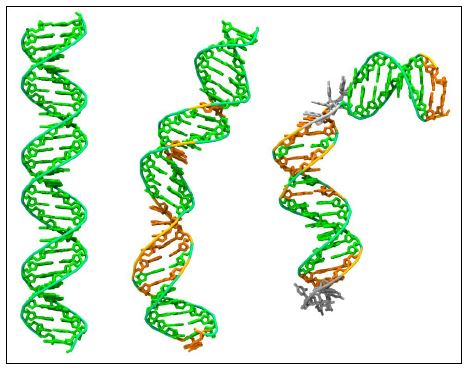 انفتاح أزواج القواعد مؤدية الى جعل المجاميع المدفونة بشكل طبيعي متاحة لعمليات التغيير والتداخل مع البروتينات ، ومثل هذه العمليات تتضمن تدمير الأواصر الهيدروجينية بين القواعد المتكاملة وتحريك القواعد بعيدا" عن الرص الحلزوني . ومن جهة ثانية فأنه عند ثلم DNA يتم تثبيت المنطقة بتداخلات الرص بين أزواج القواعد المحيطة بمنطقة الثلم وهذه تكون معتمدة على تواليات المنطقة ، والتذبذب او التموج الحاصل في الهيئة الحلزونية الموضعية لل DNA ضمن هذه الظاهرة تكون نتيجة للتذبذب في عمليات الرص التي تؤدي الى حصول أحداث لا تتكرر بكثرة حيث تنفتح أزواج القواعد مؤدية الى جعل المجاميع المدفونة بشكل طبيعي متاحة لعمليات التغيير والتداخل مع البروتينات .