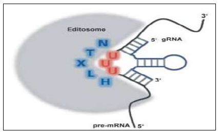 معقد بروتيني كبير يساعد في تحرير وتصحيح RNA من حيث الحذف او الاضافة ، وتستعمل فيه جزئيات gRNA الصغيرة (35 -75) نيوكلوتيد التي تكون مكملة للPre-mRNA المراد تغيرها . وداخل الجسيم تحدث عمليات قطع النيوكلوتيدات عند مناطق عدم التلاؤم Mismatch بين gRNA والجزيئات غير المحررة Unedited وبمساعدة بروتينات اخرى في المعقد مثل انزيمات U-Specific Exoribonuclease تزال ثمالة U وبعد التحرير فان mRNA المكمل لل gRNA ويقوم الانزيم RNA Ligase باعادة ربط نهايات نسخ Edited RNA. ان اضافة او حذف U او اي قاعدة اخرى يؤدي الى انتاج Edited RNA في Frameshift مؤديا الى تغيير الترجمة بواسطة الرايبوزوم .