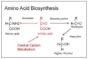 المسار الذي يمكن بواسطته تخليق الزيت الكحولي Fusel Oil اذ تحصل عمليات إزالة لمجموعة الأمين Deamination وعمليات إزالة مجموعة الكاربوكسيل Decarboxylation للحوامض الأمينية لإنتاج الكحولات العالية مثل Isopentanol و Isobutanol .ويحصل تفاعل المسار المذكور عند وجود كفاية من الحوامض الأمينية في الوسط الغذائي وتعطي نكهة لمنتجات التخمر. يوجد في الخمائر واحياء مجهرية اخرى .