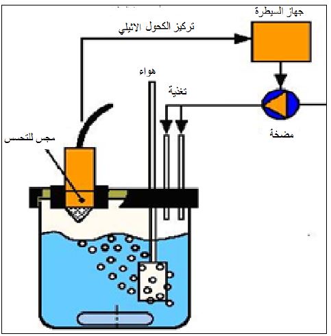 أنظمة زراعة مستمرة تستعمل الكحول الاثيلي كمؤشر للتعديل ، وتستعمل في إنتاج حامض الخليك ، ويثبت تركيز الكحول الاثيلي في المفاعل وذلك بتحسس الإشارات الواردة من متحسس الغازات للأبخرة العضوية التي تكون في حالة توازن داينميكي مع الطور السائل. ومتحسسات الغازات المستعملة تحوي على ثنائي أوكسيد القصديرSnO2 التي توضع في الفراغ الرأسي للوعاء ، كما موضح في الشكل التالي ، الذي يوضح عمليات إنتاج حامض الخليك والتي يكون تركيز الكحول الاثيلي هو العامل المحدد للنمو والانتاج ، ويمكن للجهاز العمل لعدة مئات من الساعات .