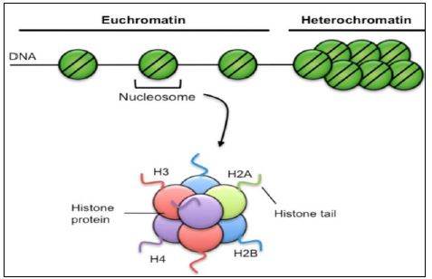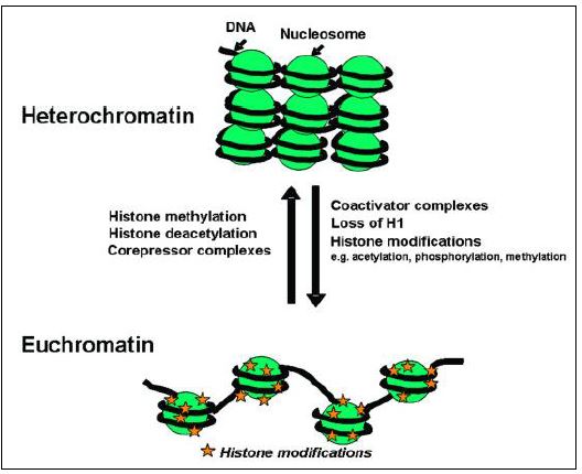 كروماتين مضغوط بشكل مخفف او راخي وتكون الجينات فيه في حالة انتساخ نشط ويكون شائعا في الخلايا النشطة . والتحول بين الكروماتين الراخي الحقيقي والاخر المضغوط المتباين يتم بعدة اليات او تفاعلات كما موضح في الاتي :