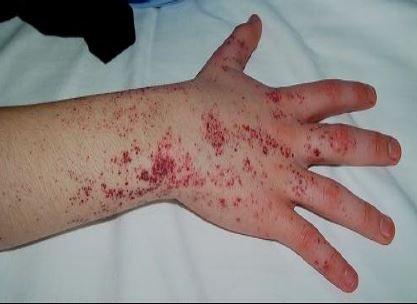 وهناك صعوبة في التعرق Hypohidrosis وظهور تضبب في العين فضلا عن مشاكل في الجهاز الهضمي وطنين في الاذن مستمر وفقدان السمع ، وتطور الحالة يؤدي الى تدمير الكلى وسكتات قلبية ، ويتكرر 40000:1 الى 60000:1 في الذكور اي انه مرتبط بكروموسوم الجنس ويؤثر في الذكور اللذين هم Hemizygous ويقل حدوثه في النساء ، ويكون السبب طفرة في جين GLA الذي يشفر للانزيم α- galactosidase A ، ويكون هناك نشاط في الانزيم الذي يكسر Globotriaosylceramide ، والطفرة فيه تؤدي الى تجمعه في كل الجسم خاصة الخلايا المبطنة للاوعية الدموية في البشرة والكلى والقلب والجهاز العصبي ، وعند استمرار التجمع يؤدي الى تدمير الخلايا . ويؤثر في ايض Sphingolipids .
